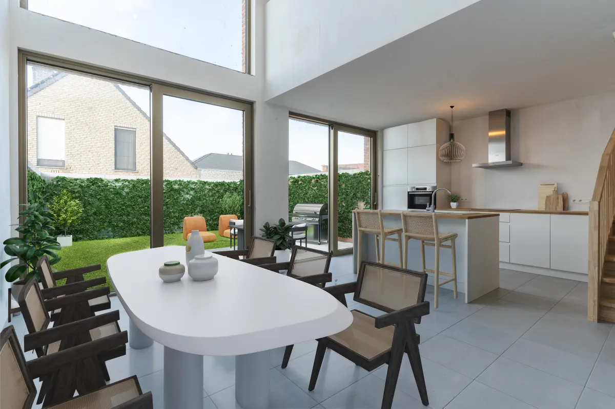 Elke woning wordt verwarmd met een geothermische warmtepomp die warmte uit de grond haalt. Dat systeem is niet alleen stil en betrouwbaar, het verbruikt ook veel minder energie dan een klassieke verwarming. Dankzij de slimme isolatie en ventilatie behaalt elke woning een EPC A-score, wat betekent dat je woont in een huis dat klaar is voor de toekomst. Je voelt het verschil op je energiefactuur én in het comfort van je woning – warm in de winter, koel in de zomer.
